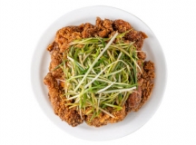 Crispy Chicken Smothered in a Soy Glaze and Topped with Sliced Spring Onions Mixed in Our Soy Garlic Dressing